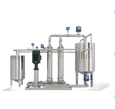 一個或多個模塊被合并到一個過濾系統中。循環泵提供循環流量,進料泵提供過濾壓力。控制流量或壓力,濾液從模塊中流出。