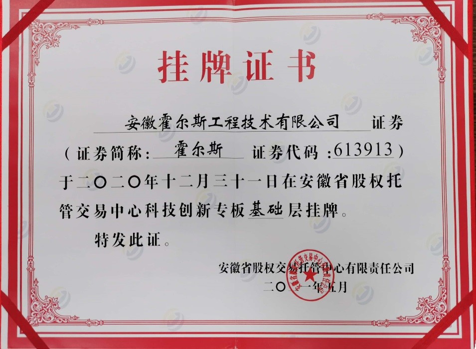 熱烈祝賀霍爾斯在安徽省股交中心成功掛牌